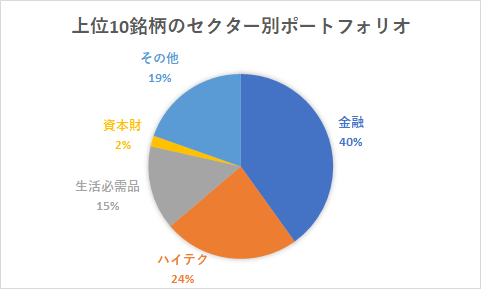 【上位10銘柄のセクター別ポートフォリオ】