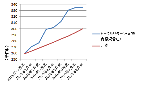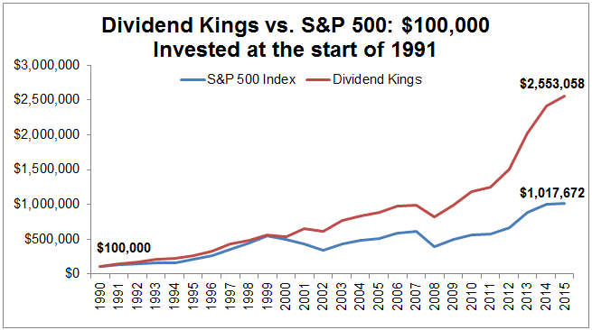 チャートは配当王とS&P500指数のトータルリターンの推移です。