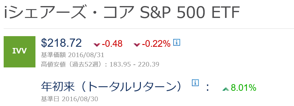 iシェアーズ・コア・S&P500ETF(IVV)の年初来トータルリターンは+8.01%でした。