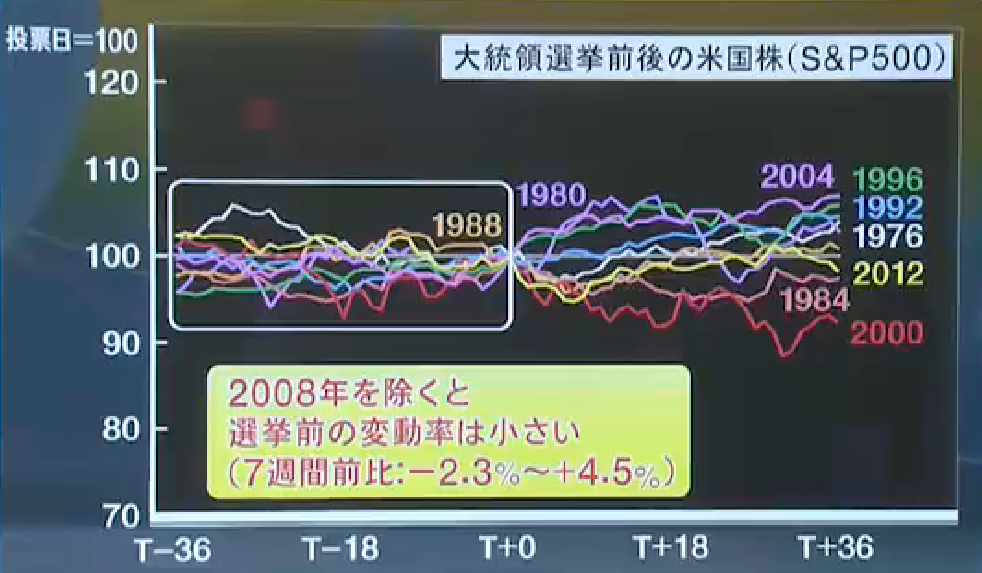 また、過去の経験則に従えば大統領選まで株式市場は横ばいで推移することが予想されます。