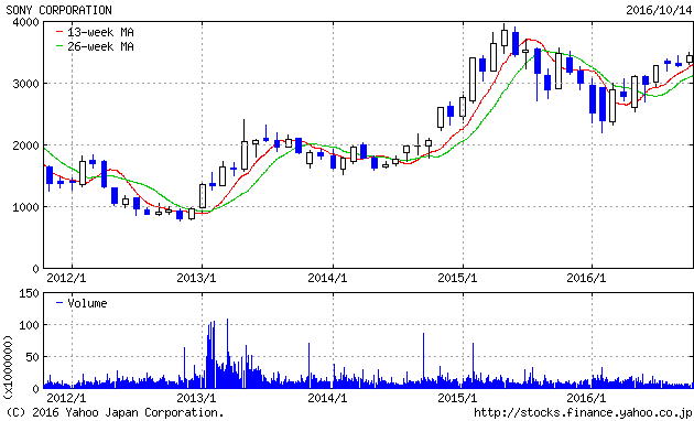 チャートはソニーの5年チャートです。2012年の1000円を底値に3400円まで上昇しています。これは赤字部門を最適化した効果だけでなく、PSVRへの期待も大きいからに他なりません。しかし、バフェット太郎のように米国の高配当優良株に投資し、配当再投資戦略を実践しているような投資家は、ソニーやグーグルなど将来有望視されている銘柄に投資してはいけません。