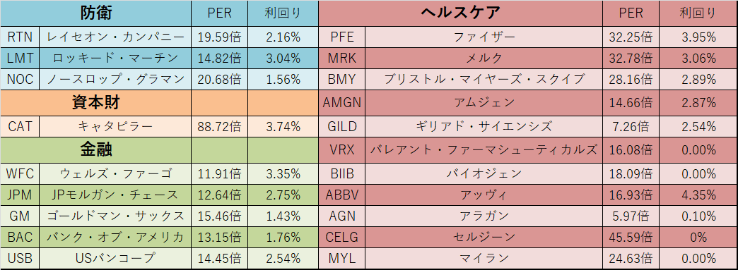 以下の表は、各セクターと代表的な銘柄一覧です。
