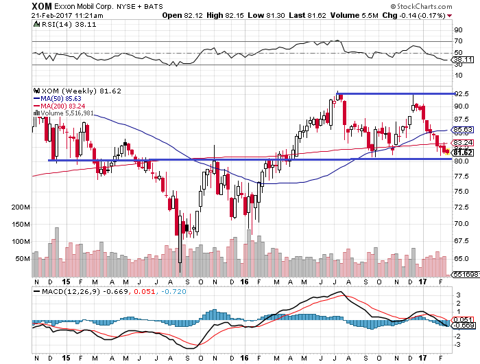 シェブロン(CVX)やコノコフィリップス(COP)などは原油価格が高騰している時、原油高の恩恵を受ける川上(探査・生産)部門に積極的に投資してきました。一方でエクソン・モービル(XOM)は原油高の時に同社独自のリスクマネジメントに基づいて、原油安の恩恵を受けやすい川下(精製)部門に積極的に投資しました。原油高の時に川下部門に投資したことで投資家たちはエクソン・モービル(XOM)を批判しましたが、2014年以降の原油安を受けて、唯一黒字を保ったのがエクソン・モービル(XOM)だけだったので再評価されました。そして原油価格が伸び悩み、競合他社が投資に二の足を踏んでいる時に積極的に投資できる企業は、次の強気相場で一段と業績が加速するのは必至です。