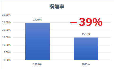 米国の喫煙率は、95年から2015年の20年にかけて39%低下しました。喫煙率の低下だけを考えれば、タバコ業界の未来は一見して暗く感じます。