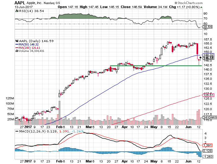 ただし、アップル(AAPL)株に至っては50日移動平均線を割り込んだままであることから、今週、50日移動平均線をブレイクアウトしてくれるかが注目されます。