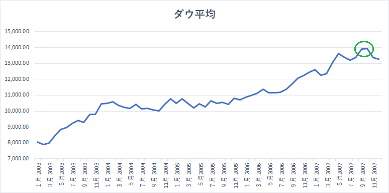 翻って、足下の米国株式市場に目を落せば、多くの投資家たちは史上最高値圏にある株式市場に対して警戒感を強めています。つまり、「暴落直前の07年1万4000ドル地点に立っているのかもしれない」と考えているわけです。
