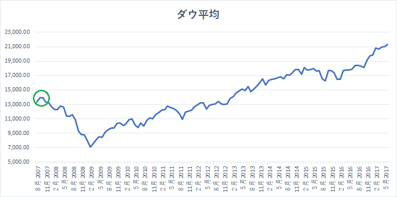しかし、その後ダウ平均は順調に回復し、16年11月の大統領選挙にトランプ氏が勝利するとさらに加速して、今年ついに2万ドルの大台に到達しました。多くの投資家たちは「あの時」投資しなかったことを後悔し、例え07年の1万4000ドルからでも投資を始めれば良かったと嘆いています。