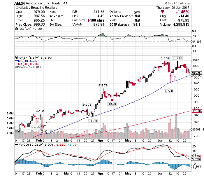 アマゾン(AMZN)も50日移動平均線を割り込んでいません。セーフ。