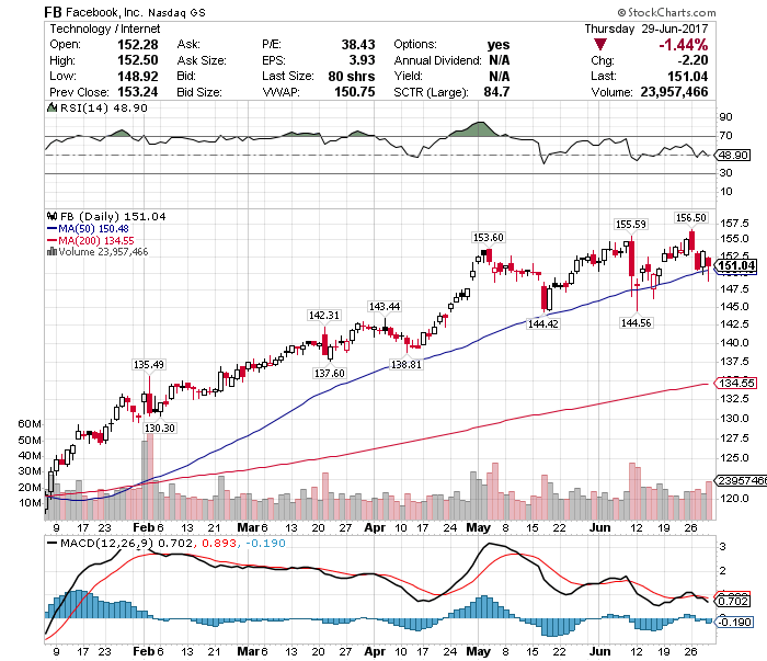 フェイスブックは一時50日移動平均線を下回るも終値ベースでは回復し、上昇トレンドを堅持しました。セーフ。
