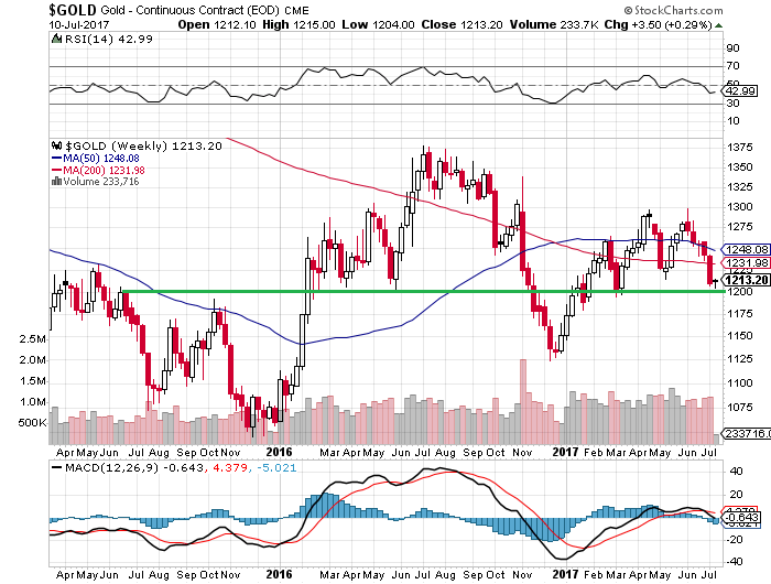 昨日の取引きで一時1204ドルまで下げましたが、今週金曜日から本格化する第2四半期決算とこれから明らかになる経済指標が予想を上回る良好な結果となれば、金価格はサポートラインを下にブレイクアウトします。