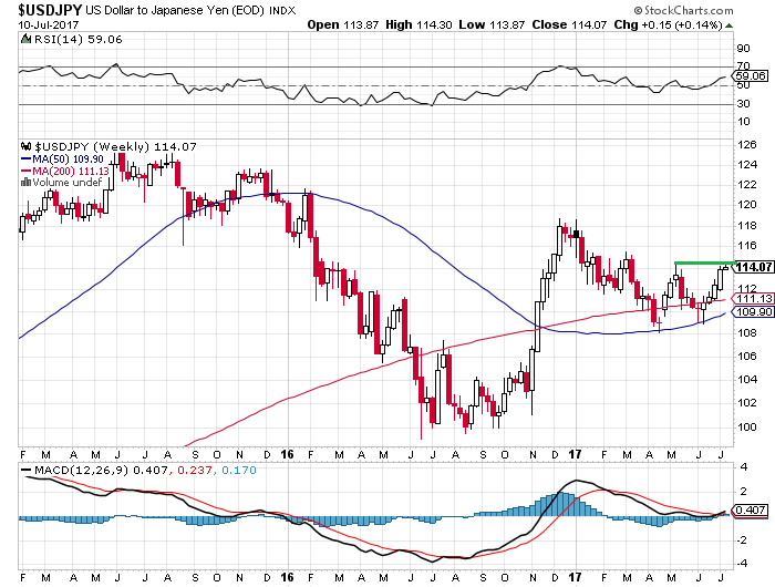ドル円はレジスタンス(上値抵抗線)を試す展開になっていますが、日米の金利差は拡大傾向にありますから、これを上にブレイクアウトして118円を目指します。