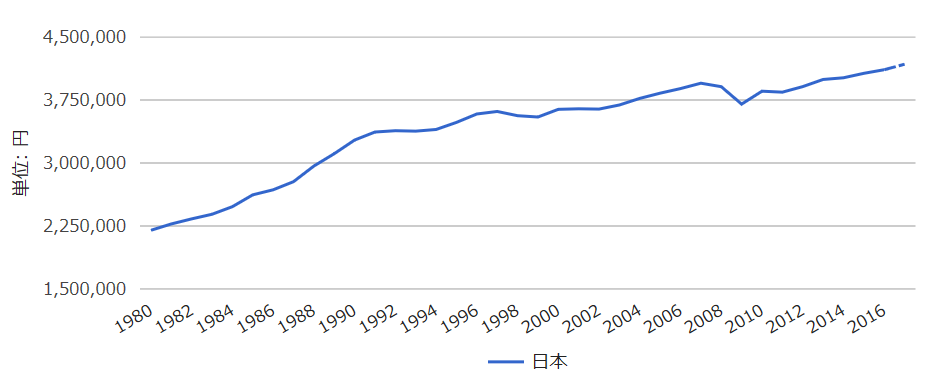 【日本の一人当たりの実質GDP:1980-2017】