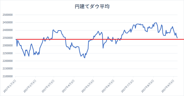 ダウ平均はわずか8カ月で1万9762.60ドルから2万1797.79ドルと+10.29%上昇し、市場から割高との見方が広がっていますが、ドルが下落していることを考えれば、昨年末からバリュエーションはほとんど変わっていないと見ることもできます。