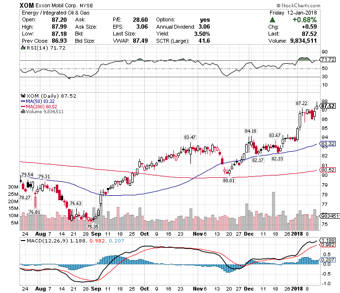 その兆候はすでに見られていて、エクソン・モービルの株価は17年9月を底値に一貫して上昇し続けています。最初のターゲットは2016年の高値90ドル。そして次に14年の高値105ドル。それを上にブレイクアウトすれば青天井です。