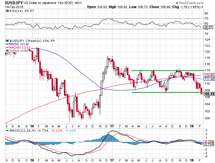 17年4月以降、ドル円相場は108円~114円のレンジ相場を形成していましたが、ついに108円のサポートラインを下回り、106円台で推移しています。通常、日米の金利差が拡大すれば為替はドル高円安に動きやすいものなので、今回の円高は予想外です。