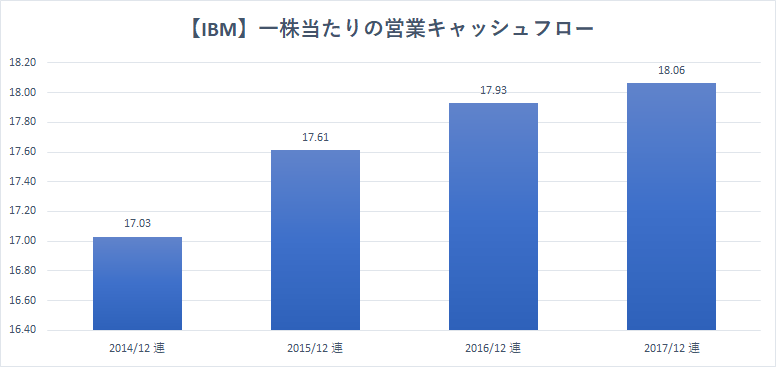 【IBMの一株当たりの営業キャッシュフロー:2014ー2017】