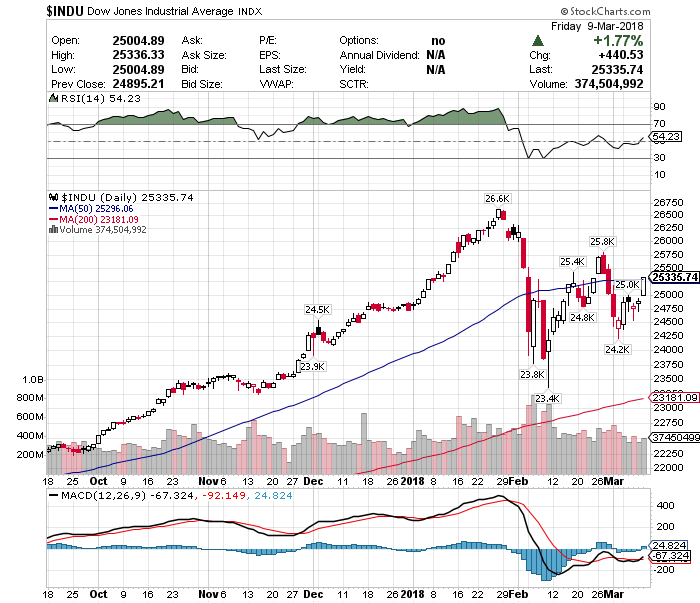 9日のNYダウ株式市場は前日比+440.53ドル(+1.77%)高の2万5335.74ドルと大きく上昇し、ナスダック総合は+132.86(+1.79%)高の7560.81ポイントと過去最高値を更新しました。上昇した主な要因は、2月の米雇用統計が好感されたためです。