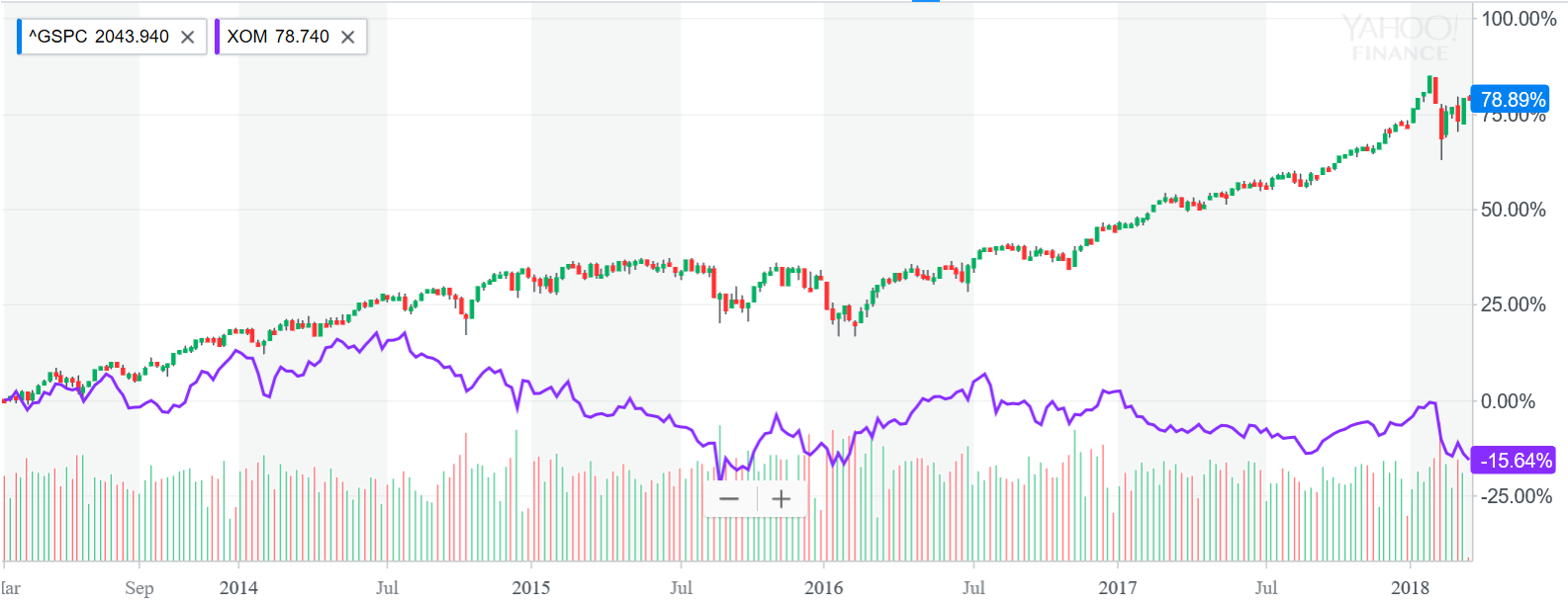 【S&P500種指数とエクソン・モービルの株価推移:2013ー2018】