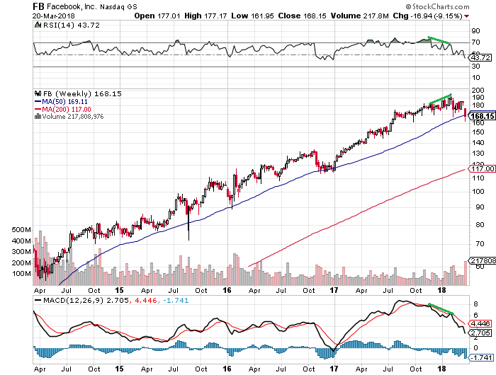 フェイスブックは12年に上場して以降、この50日移動平均線から幾度となく反発して強気トレンドを維持してきました。しかし、永遠に続く強気トレンドはないことを考えると、FANG(牙)株ブームは「F」から崩れ落ちてしまうのかもしれません。