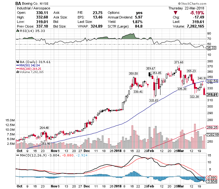 さて、世界貿易摩擦が懸念される中、特に影響を受けると見られる資本財株が軒並み売られ、ボーイング(BA)の株価も前日比ー5.19%安と急落しています。