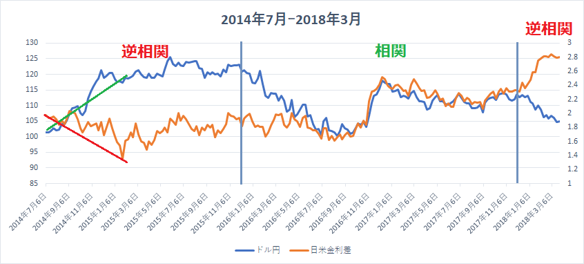 【ドル円相場と日米金利差:2014年7月~2018年3月現在】