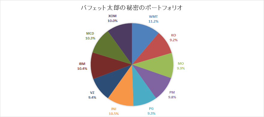 現在、バフェット太郎の構成比率最高銘柄トップ3は上からウォルマート(WMT)の11.2%、ジョンソン・エンド・ジョンソン(JNJ)の10.5%、IBMの10.4%となっており、最低銘柄トップ3は下からコカ・コーラ(KO)の9.2%、プロクター&ギャンブル(PG)の9.3%、ベライゾン・コミュニケーションズ(VZ)の9.4%となっているので、4月はこの三銘柄のいずれかを買い増すことになりそうです。