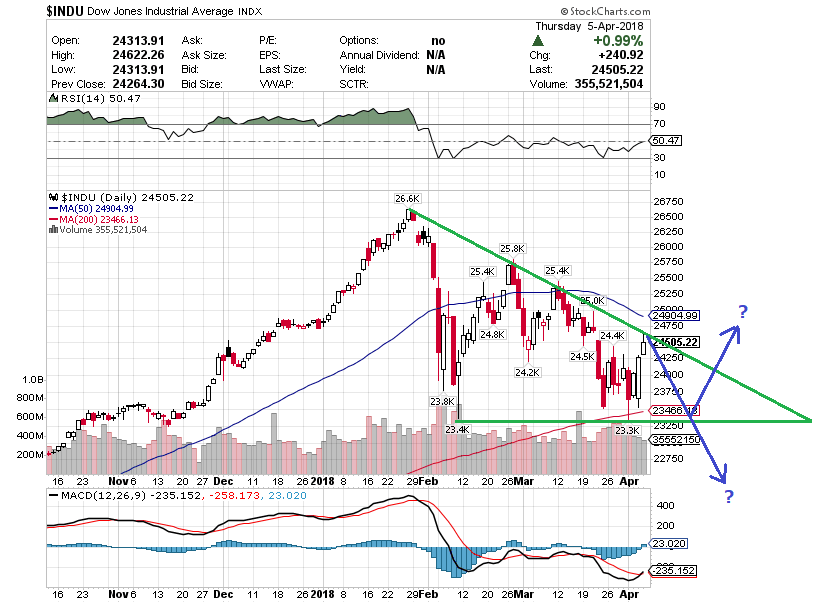 ダウ平均の日足チャートを眺めると、弱気の三角保合いを形成しており、下にブレイクアウトしてしまう可能性が高いものの、200日移動平均線では長期投資家による「買い」支えが控えています。さて、貿易摩擦と利上げへの懸念から相場がギクシャクしつつあるものの、長期投資家は優良株を手放すべきではありません。そもそも長期投資とは、株価に投資しているわけではなくて事業に投資しており、貿易摩擦や利上げが事業の競争優位性を脅かすものではないのでネガティブになる必要はないからです。