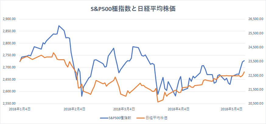 【S&P500種指数と日経平均株価:2018年1月~5月現在】