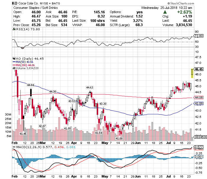 ソフトドリンク大手のコカ・コーラ(KO)が第2四半期決算を発表しました。内容は良かったです。
