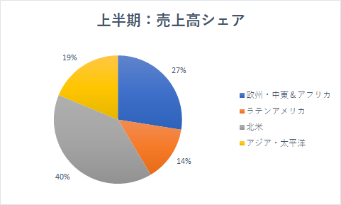 上半期の地域別売上高は「欧州・中東&アフリカ」が前年同期比9%増、「ラテンアメリカ」同8%増、「北米」同9%増、「アジア・太平洋」同1%増でした。