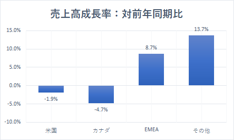 カナダの売上高は前年同期比ー4.7%の減少でした。これは前年同期に実施した販促活動の反動が大きくなったためです。