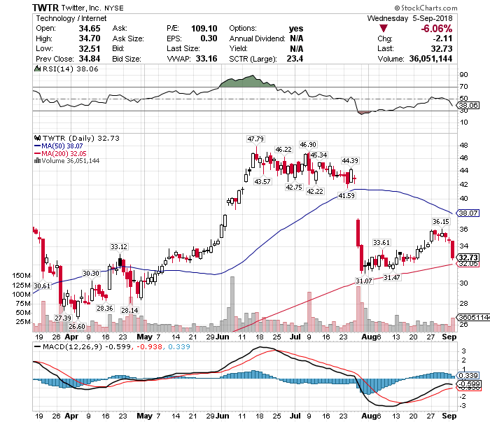 ツイッターは6月にS&P500種指数の構成銘柄に採用されることが決まったことで急騰していましたが、7月末に予想を大きく下回る第2四半期決算を発表したことで株価は急落しました。