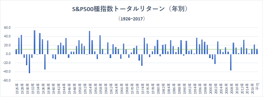 【S&P500種指数トータルリターン(年別):1926ー2017】