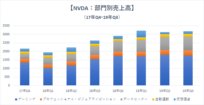 グーグルなどクラウド大手のデータセンター向け事業が好調だったものの、仮想通貨ブームが終焉したことで、仮想通貨部門の売上高は低迷しました。また、仮想通貨のマイニングにも使われていたゲーム向けGPU「パスカル」が過剰在庫に陥ったことが業績全体を圧迫しました。