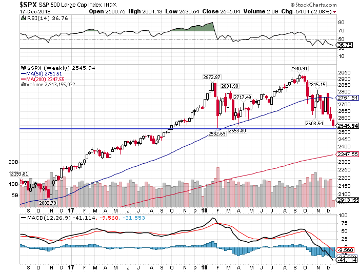 17日のNYダウ株式市場は前日比-507.53ドル(-2.11%)安の2万3592.98ドルと、9カ月ぶりに2万4000ドルの大台を割り込みました。また、S&P500種指数は同-54.01ポイント(-2.08%)安の2545.94ポイント、ナスダック総合指数は同-156.94ポイント(-2.27%)安の6753.73ポイントと三指数揃って急落しました。