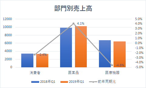 医療機器部門は64億5900万ドルと、同-4.6%の減収でした。