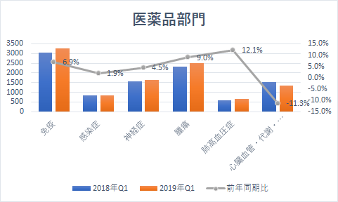売上高全体のおよそ半分を占める医薬品部門は以下の通りでした。