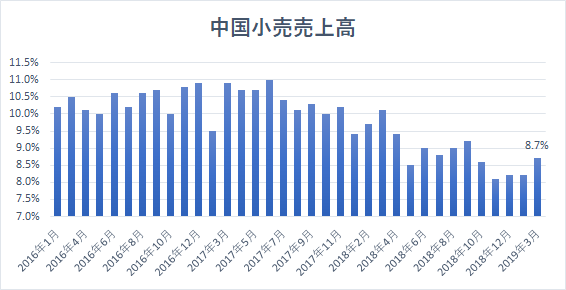小売り売上高も前年同月比+8.7%と、1ー2月の+8.2%から伸びが加速するなど底入れの兆しが見えています。