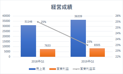 売上高成長率は+17%(為替の影響を除いた売上高成長率は+19%)と、前年同期の+26%から大幅に鈍化しました。また、かねてから懸念されている営業利益率は23%(EU当局による罰金除く)と、前年同期の25%から2%ポイント低下しました。