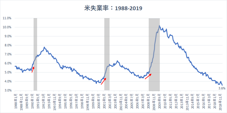 過去三回のリセッション(景気後退)を振り返ると、いずれもリセッション直前に失業率が上昇していたことから、未だ失業率が上昇に転じていないことを考えれば、リセッションが差し迫っている状況ではないということがわかります。