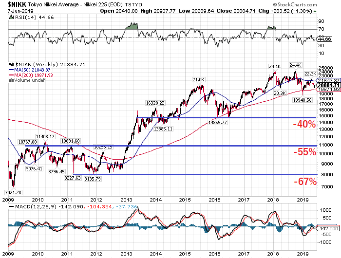 仮に16年の安値1万4865円まで下げるなら-40%、11年の高値1万891円なら-55%、11年の安値なら-67%の暴落が予想されます。