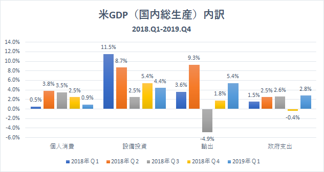 「輸出」は5.4%と、前回の1.8%を大きく上回りました。米中貿易戦争を巡る報復関税発行前の駆け込み需要が輸出を押し上げたと見られ、19年Q2以降はその反動が懸念されます。