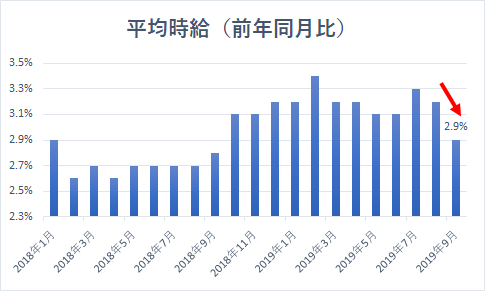 ただし、平均時給は前年同月比で+2.9%と、予想の+3.2%を下回ったほか、前月の+3.2%からも低下しています。