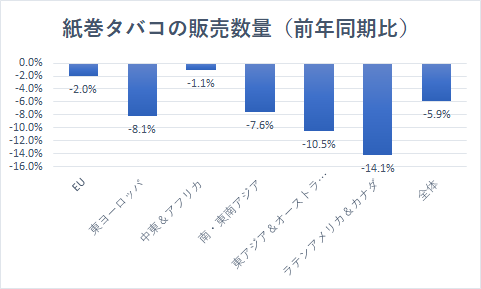 消費者の健康志向とタバコ離れが加速する中、紙巻きタバコの販売数量は大きく落ち込んでいます。