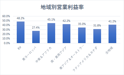 また、タバコ業界は参入障壁が高いため、為替要因を除く全地域の営業利益率は41.2%と非常に高いです。