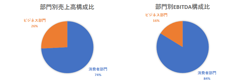 ベライゾンは売上高全体の74%を消費者部門が占めていますが、EBITDA(税引き前利益に特別損益や減価償却費を加算した実質利益)は全体の84%を占めるなど、消費者部門はより重要度の高い部門です。