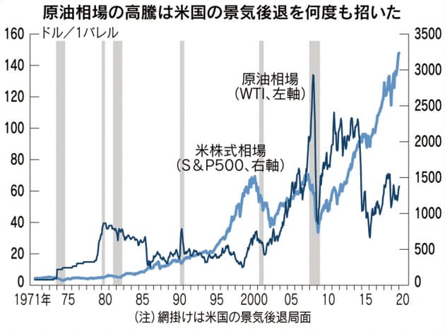 歴史を振り返ると、原油価格の高騰はリセッション(景気後退)の兆候を示すシグナルであったことがわかります。