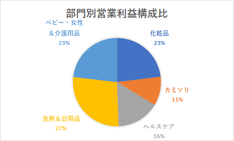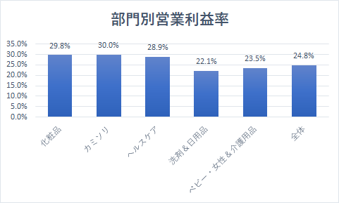 「ベビー・女性&介護用品」の営業利益率は23.5%と、前年同期の20.4%から3.1%ポイント上昇しました。