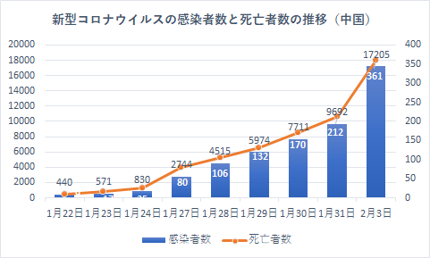 厚生労働省が発表した中国の感染状況は、感染者数が1万7205人、死亡者数361人と、死亡者数が「SARS」の349人を上回りました。