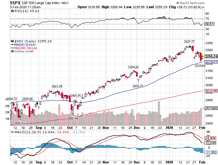S&P500種指数を眺めると、50日移動平均線がサポートラインとなり反発している一方、安全資産とされる債券の利回りは上昇(価格は下落)しています。つまり、投資家らは新型コロナウイルスの影響を限定的だと考えていて、再びリスク資産に資金を振り向けているわけです。
